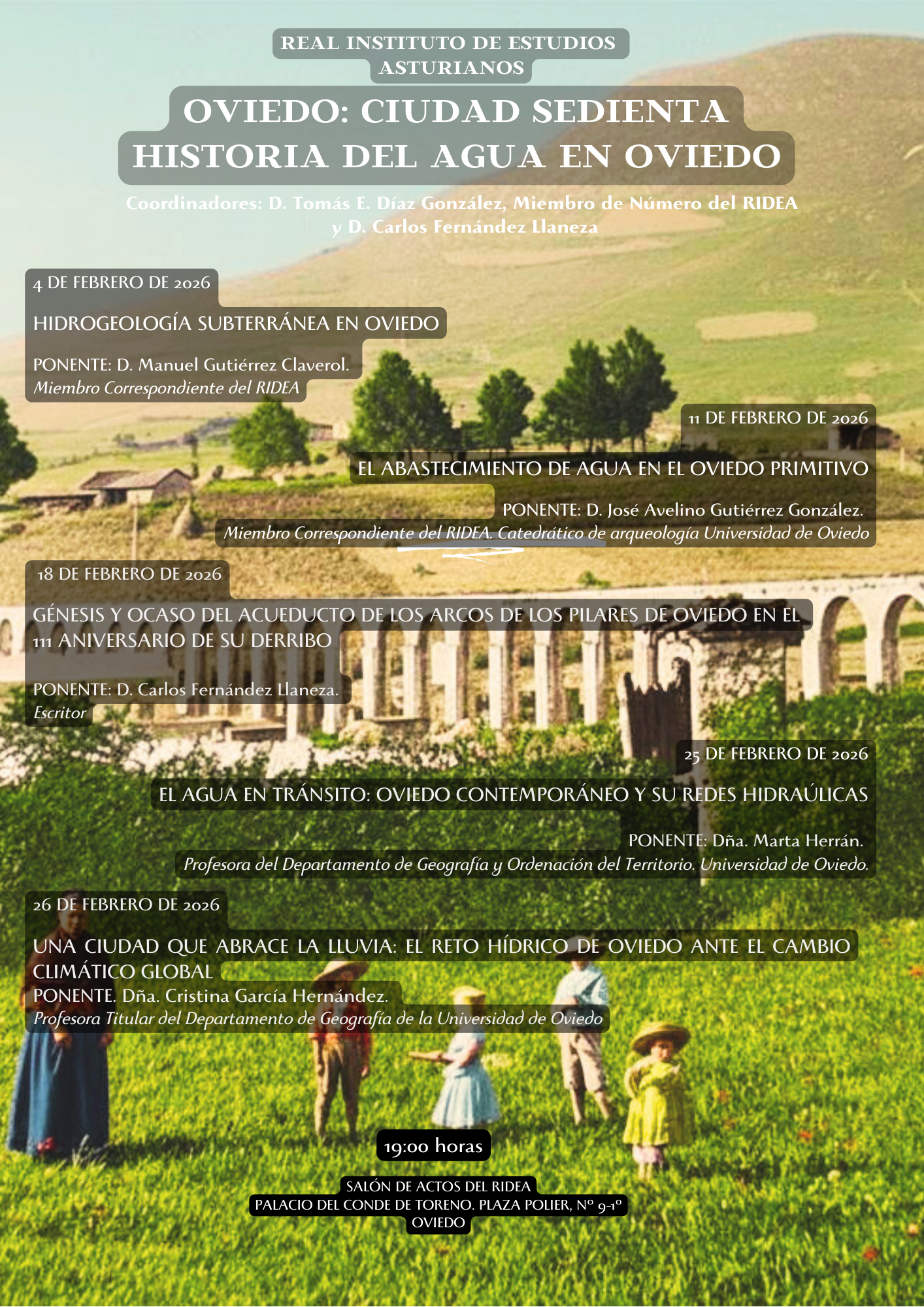 3ª CONFERENCIA DEL CICLO "OVIEDO: CIUDAD SEDIENTA. HISTORIA DEL AGUA EN OVIEDO" - GÉNESIS Y OCASO DEL ACUEDUCTO DE LOS ARCOS DE LOS PILARES DE OVIEDO EN EL 111 ANIVERSARIO DE SU DERRIBO.