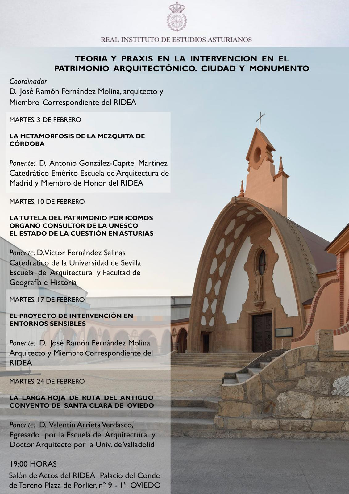 CICLO DE CONFERENCIAS: "TEORÍA Y PRAXIS EN LA INTERVENCIÓN EN EL PATRIMONIO ARQUITECTÓNICO. CIUDAD Y MONUMENTO". Segunda conferencia: LA TUTELA DEL PATRIMONIO POR ICOMOS ÓRGANO CONSULSTOR DE LA UNESCO, EL ESTADO DE LA CUESTIÓN EN ASTURIAS.